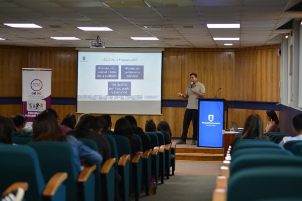Dentro de su intervención, el Mg. Burdiles Aguirre presentó la ponencia titulada «Hipoacusia: Detección y Manejo. Una guía integral sobre la pérdida auditiva, su impacto en la salud pública y las estrategias de tratamiento». En su exposición, el profesional abordó la creciente prevalencia de la hipoacusia (pérdida auditiva) en la población mayor, destacando cómo esta condición afecta no solo la capacidad de comunicación de los pacientes, sino también su bienestar social y emocional.
