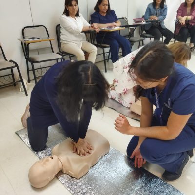 El desarrollo de la capacitación se llevó a cabo en un ambiente participativo y dinámico, donde las asistentes valoraron la instancia de reforzar técnicas esenciales para la atención de emergencias. Las sesiones formativas fueron impartidas por las académicas Mg. Ángela Astudillo y Mg. Marcela Espinoza, junto a Juanita Venegas, quienes guiaron ejercicios prácticos respaldados por evidencia actual. Las estudiantes Nicole Jara y Constanza Fernández brindaron apoyo operativo y demostrativo durante toda la jornada.